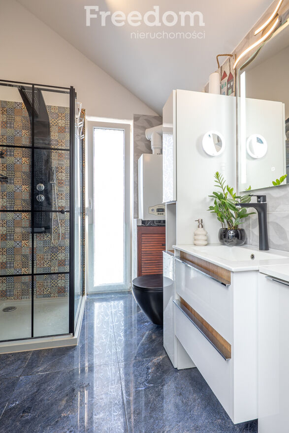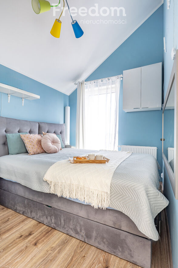 - Liczba pokoi: 3 (salon + 2 sypialnie na piętrze)